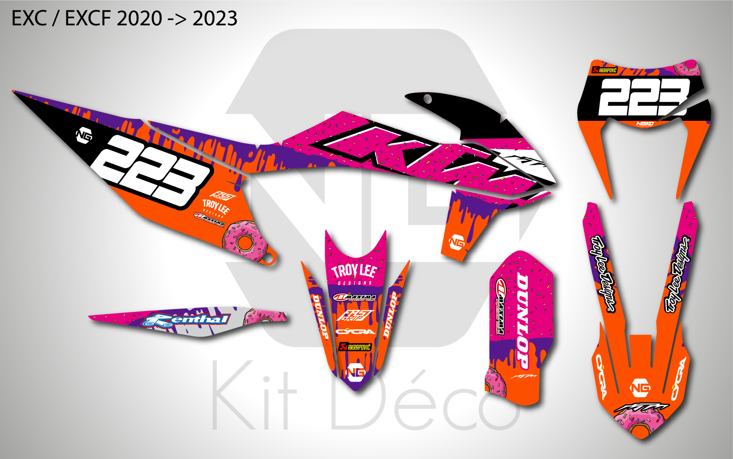 Kit déco NG KTM 125 / 250 / 300 / 350 / 450 / 500 EXC / EXCF / TPI 2020 -> 2023 | DONUTS Séries